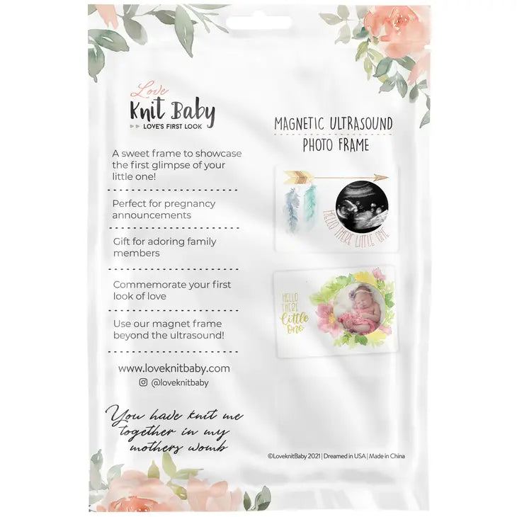 This magnetic ultrasound frame is the perfect way to cherish and share the story of your little one. arrives in beautiful packaging that easily hangs for display. 5x7 inches with 3.5" cutout circle. sturdy, high quality wood. weight: 4 ounces.
